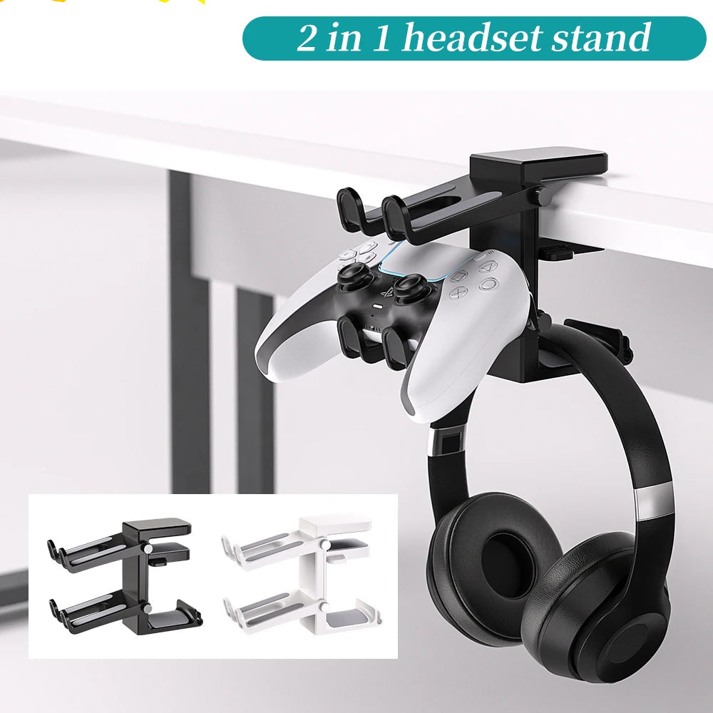 Keep your gaming desk or office organized and stylish with the 2-in-1 Headphone and Gamepad Stand . With an innovative design that combines functionality and aesthetics, you'll always have your devices at hand and in perfect order.