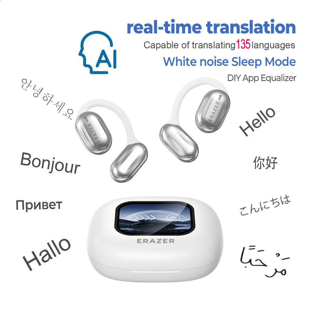 Meet the Translator Earbuds, your ultimate travel and tech companion. These advanced OWS (Open Wear Style) Bluetooth earphones combine real-time AI translation, HD audio, and a sleek color screen touch control. Whether you're traveling, exercising, or attending meetings, the XP2 keeps you connected across languages. With TF card support, IPX5 waterproofing, and long battery life, it's not just an earbud — it’s a global communication tool.